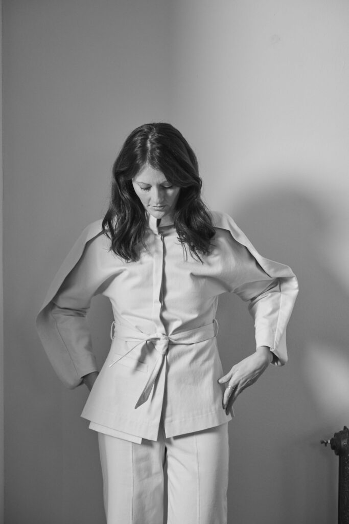 Among other roles, she worked as Fabric Design Development Manager at Burberry, where she was responsible for fabric development for major collections, and gained experience at Zara and in artisan tailoring at Savile Row in London. This combination of large-scale and small-scale production models gives her deep insight into the structure and tensions within the fashion system.